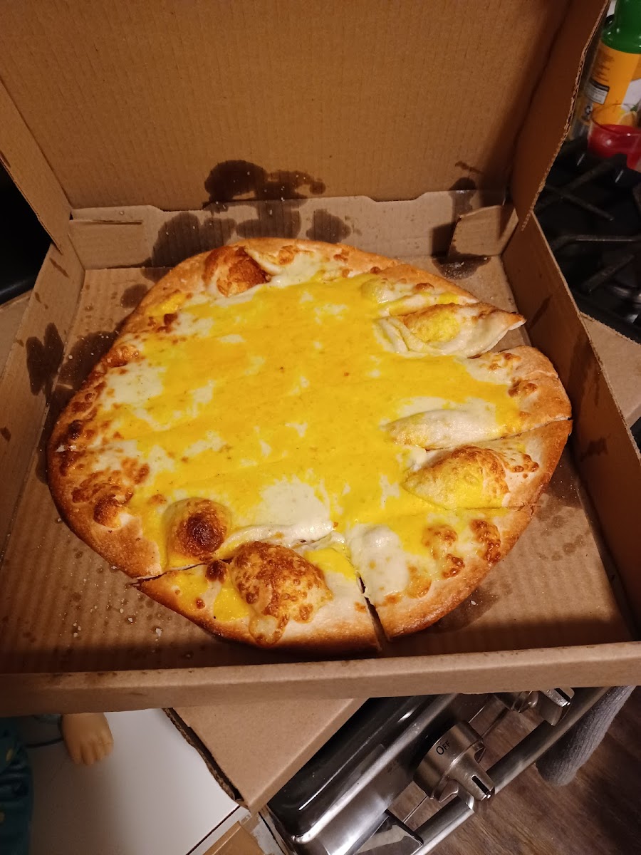We ordered the deluxe, pepperoni, and some cheese bread in an attempt to give this pizza joint a try. We were extremely impressed. The pizza was phenomenal. The cheese bread was top notch. My wife tried their home made ranch and calls it " the best". I ordered the cheese dip and was blown away. We will be becoming regulars.