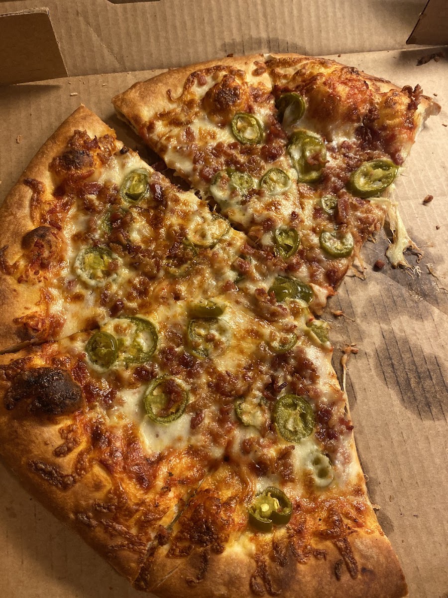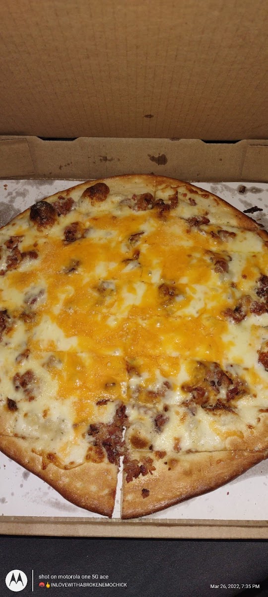 We drive from Dansville for Rob’s pizza. Decided to give it a try a year ago & now it’s our preferred spot. The chicken Alfredo (+bacon) is delicious & we have had a mix of other toppings with traditional red sauce. Jalapeño & bacon is my fave. All great thus far! Will continue to order/drive to pickup.