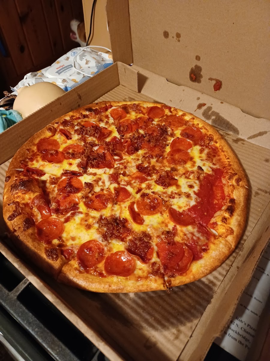 Just moved to the area, first night after unloading boxes all day we ordered pizza from the one independent place in town, Rob's. Not going to lie, I wasn't expecting to be impressed, but let me tell you.. this was hands down, hand to God, the best pizza I have ever had the pleasure of enjoying, ever. I am 60 years old and have lived in 9 states, I've enjoyed dozens of independently owned pizza establishments but Rob's has topped my list. I knew it was going to be good while waiting in the lobby and seeing the cheese being freshly grated and then the great customer service. Thanks Rob's Pizza, you have gained new fan and loyal customer.